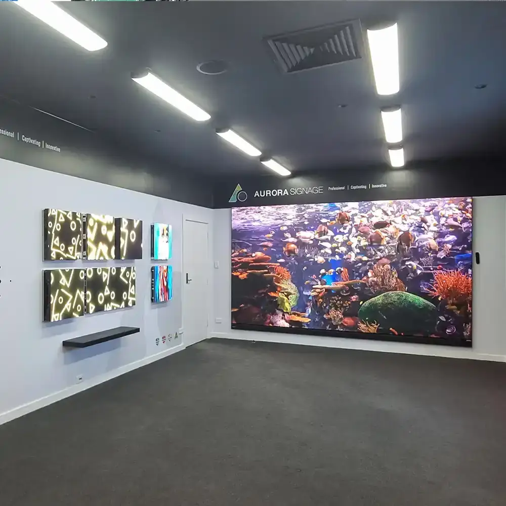 Aurora’s presence in the local signage market has paved the way to becoming a respectable influence in the advertising and point of sale space. With a locally developed, engineered and supported portfolio of indoor, outdoor (weatherproof), impact proof, curved/flexible and transparent options, our signage solutions are only restricted by the imagination. All products have a range of resolution options from highly detailed “super fine pitch” to other alternatives for applications that demand less visual detail. Creative options such as in-store wall to ceiling, display bin advertising, external transparent building solutions and toughened surface protection for busy thoroughfares to name a few is indicative of the endless options Aurora has to offer. We have a considered approach to the development of the latest innovations and features.