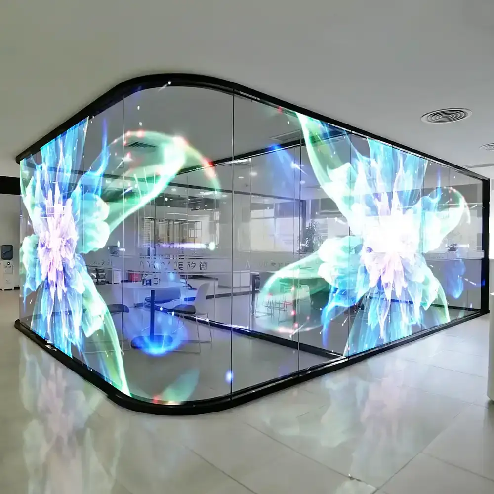Transparent LED solutions are taking the corporate, point of sale, and retail sectors to the next level of visual communication. Transparent technology is unobtrusive yet has a truly captivating appeal to the eye. It’s versatility is as amazing as what the finished product is intended to achieve which is the display of targeted content for advertising, promotional, or corporate imagery to enhance but not detract from the environment in which a screen has been installed. Aurora’s transparent LED range provides a minimal footprint, slimline driving control gear and power supplies that can be housed remotely from the screen hardware to create the most minimalistic outcome possible. Our transparent LED is easy to install and maintain, ultrathin and lightweight, cable free, has a high refresh rate, and is a highly durable product making it one of the most versatile and impactful visual solutions available for consumer-facing environments.